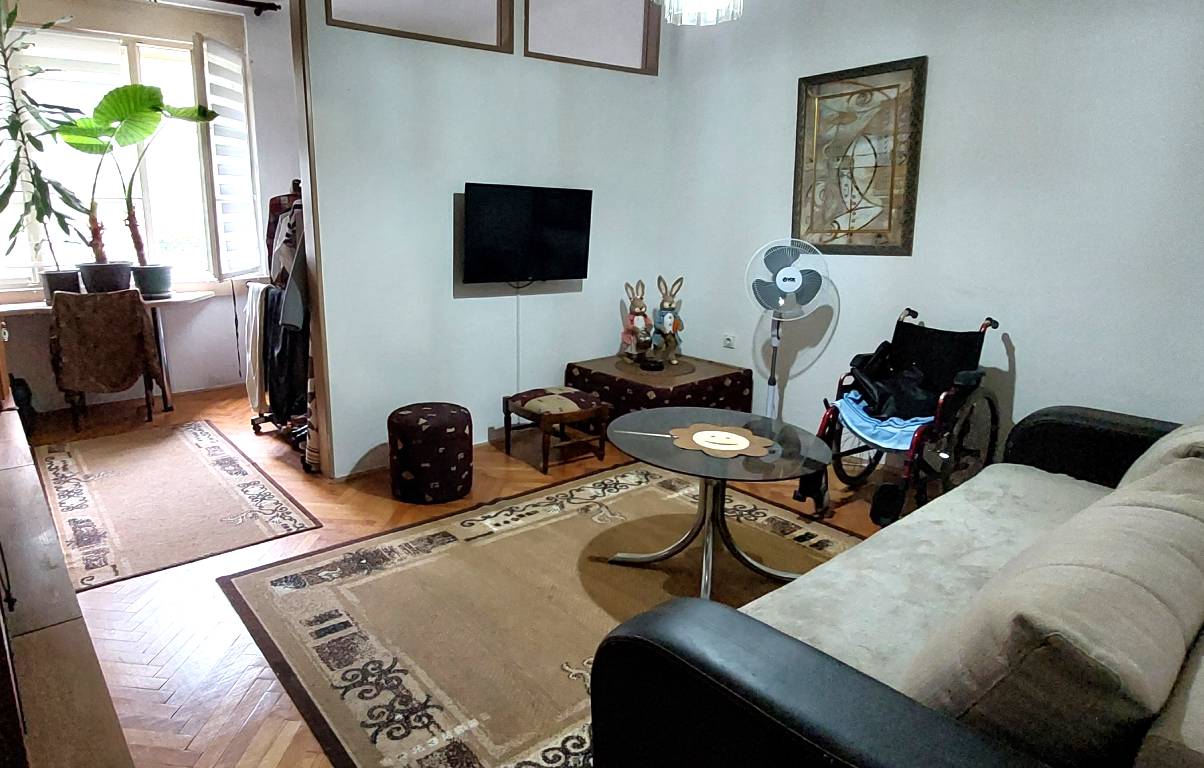 Stan se nalazi kod poliklinike u blizini tržnog centra,osnovnih i srednjih škola.Sastoji se od velikog dnevnog boravka koji može da sew pregradi,spavaće sobe,kuhinje sa trpezarijom,lodje ,hodnika i pripadajućeg podruma-